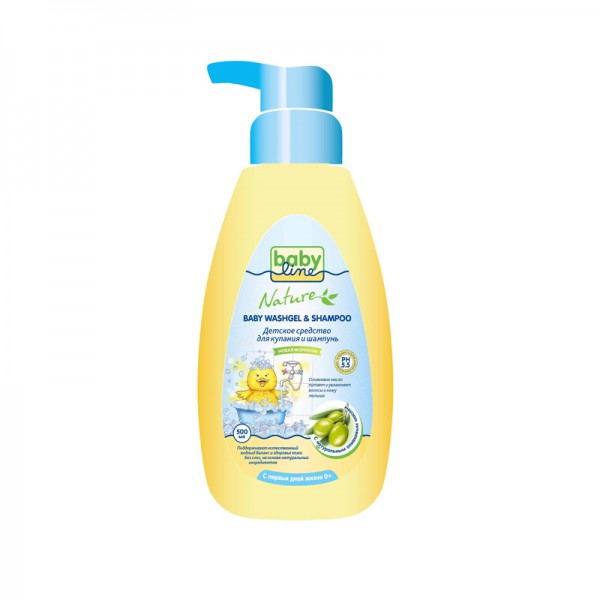 Детское средство для купания и шампунь с натуральным оливковым маслом BabyLine, разработан для ежедневной очистки чувствительной кожи малыша.