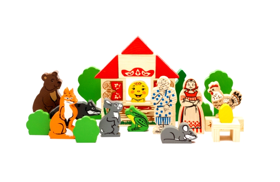 В набор вошли три сказки: Колобок, Курочка Ряба, Теремок