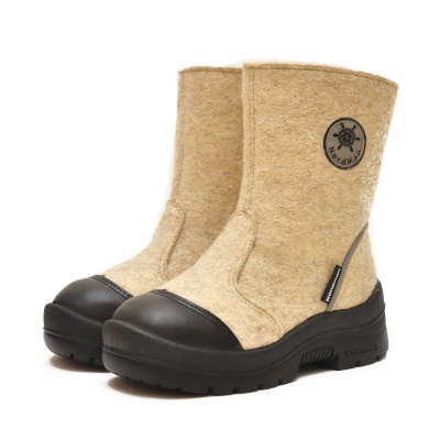 Детские валенки Nordman сделаны из натуральных материалов. Если вы хотите быть уверены, что зимой ноги вашего малыша будут теплые и сухие, эти валенки вам подойдут. Шерстяной мех сохраняет тепло даже в морозы и регулирует теплообмен ног. Толстая рифленая подошва защитит от скольжения. Обратите внимание, носок дополнительно усилен вставкой из натуральной кожи.