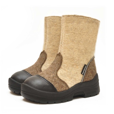 Детские валенки Nordman сделаны из натуральных материалов. Если вы хотите быть уверены, что зимой ноги вашего малыша будут теплые и сухие, эти валенки вам подойдут. Шерстяной мех сохраняет тепло даже в морозы и регулирует теплообмен ног. Толстая рифленая подошва защитит от скольжения. Обратите внимание, носок дополнительно усилен вставкой из натуральной кожи.