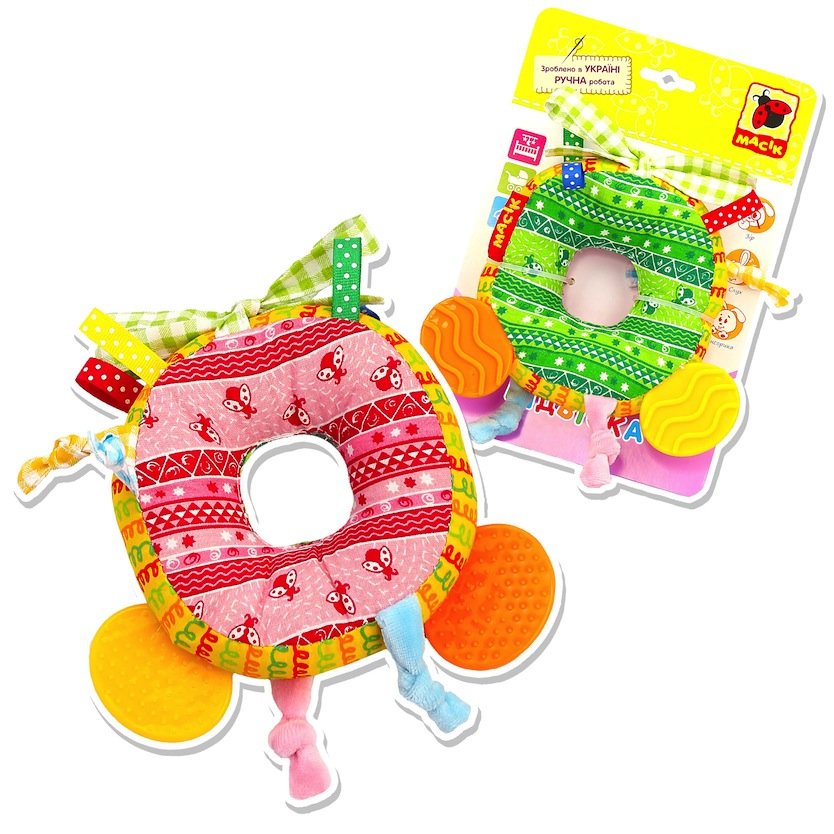 Развивающие элементы: разноцветные петельки, шелестящие элементы, гремелка, <<вкусные>> узелки.
