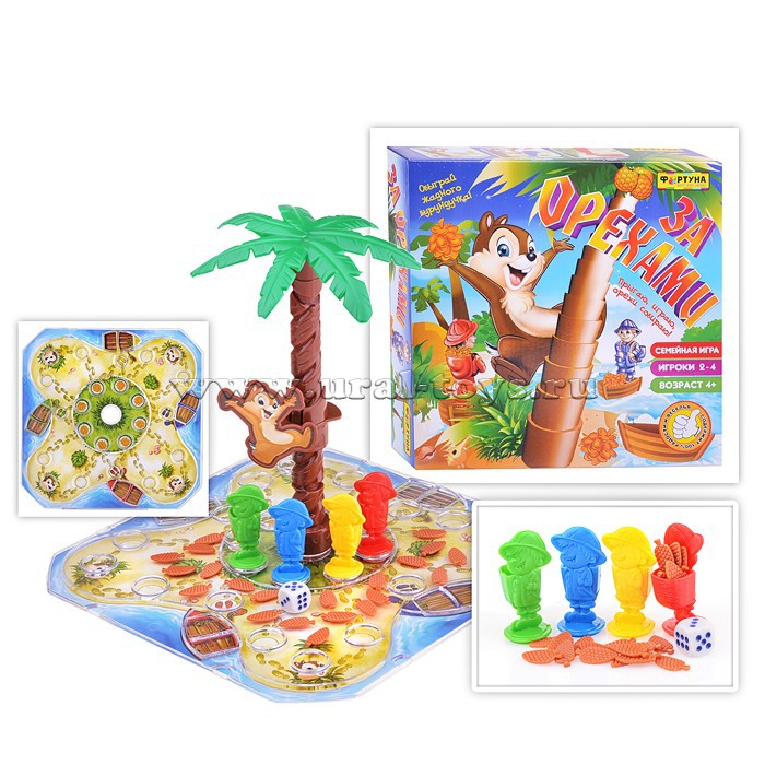 Представьте, что вы совершенно случайно попали на остров, полный деревьев с орехами. Теперь ваша задача - собрать как можно больше орехов, пока вас не заметил разгневанный бурундук! За один раз можно унести только 3 орешка, поэтому нужна будет вся ловкость и скорость, чтобы выиграть в этой игре. Играть можно как в семейном кругу, так и в компании до 4 человек.