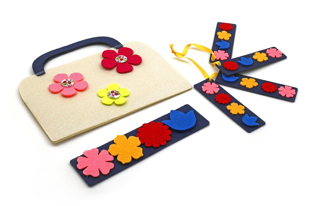 2. Поиграйте с цветочками на сумочке: отстегните их от пуговиц и пристегните снова (игра развивает мелкую моторику).