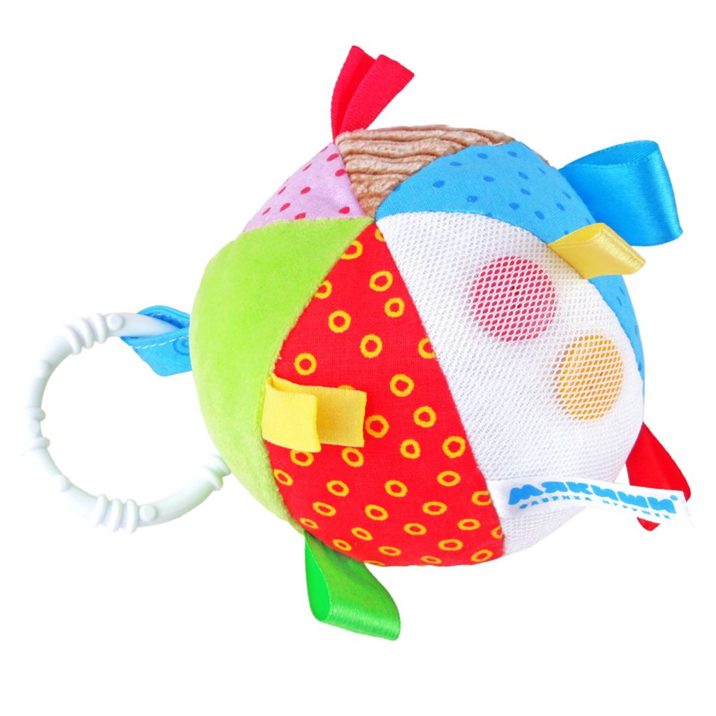 Мягкий и приятный на ощупь мячик, издает звук зёрнышек, стимулирующий органы слуха малыша.